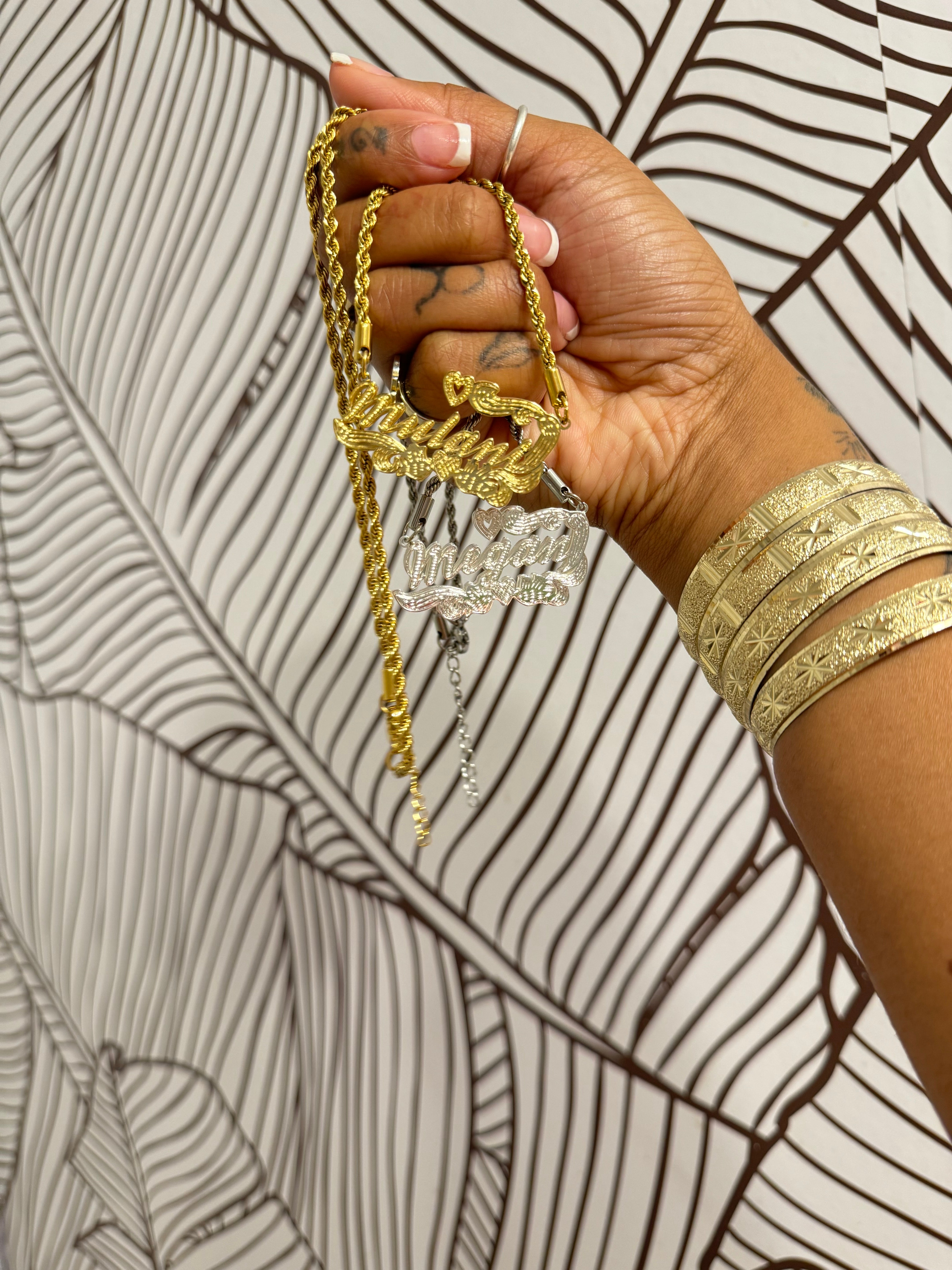elevate your look with our elegant double plated custom name necklace, available in all gold, all silver, or a sophisticated gold and silver mix. crafted from premium gold-filled metal or high-quality sterling silver, this piece is designed to maintain its luster and durability for years to come.